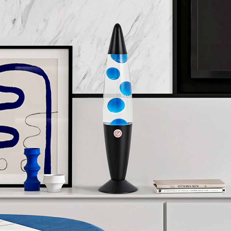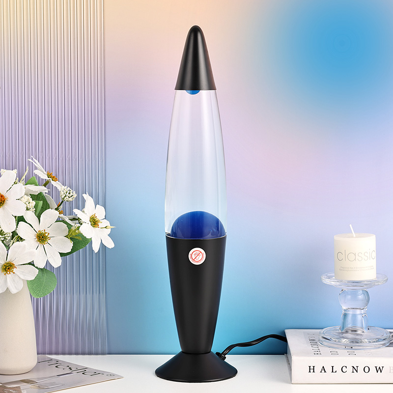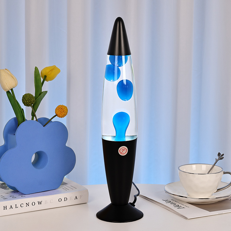 16-инчова синя лава лампа с черен нюанс е с висок захранващ щепсел. лилава лилава алуминиева обвивка, лилав восък, когато свети, чисто лилава восъчна лампа.