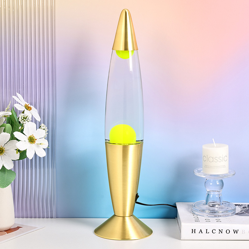 24V16-инчова луксозна оранжева лава лампа восъчна лампа има чиста вода в прозрачното стъкло и зелен восък вътре. След нагряване восъкът плува неравномерно във водата, което се оценява високо.