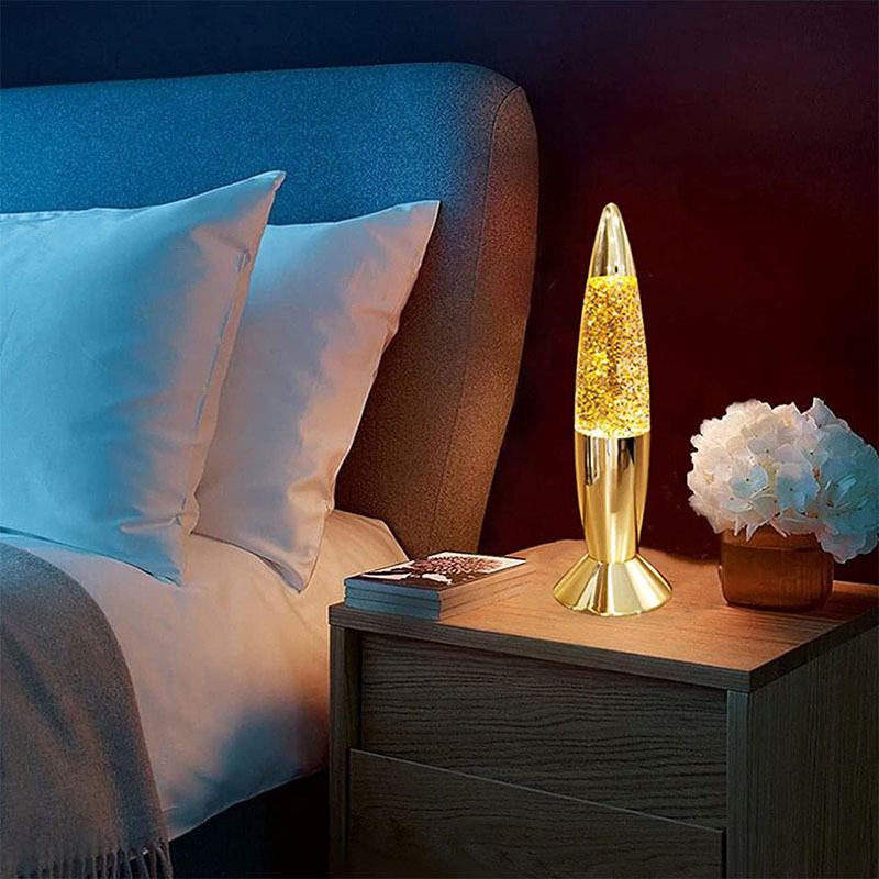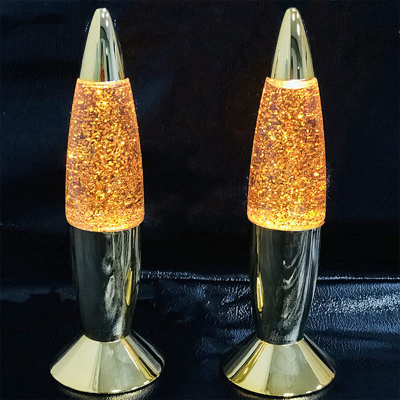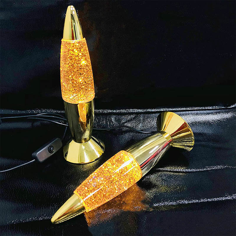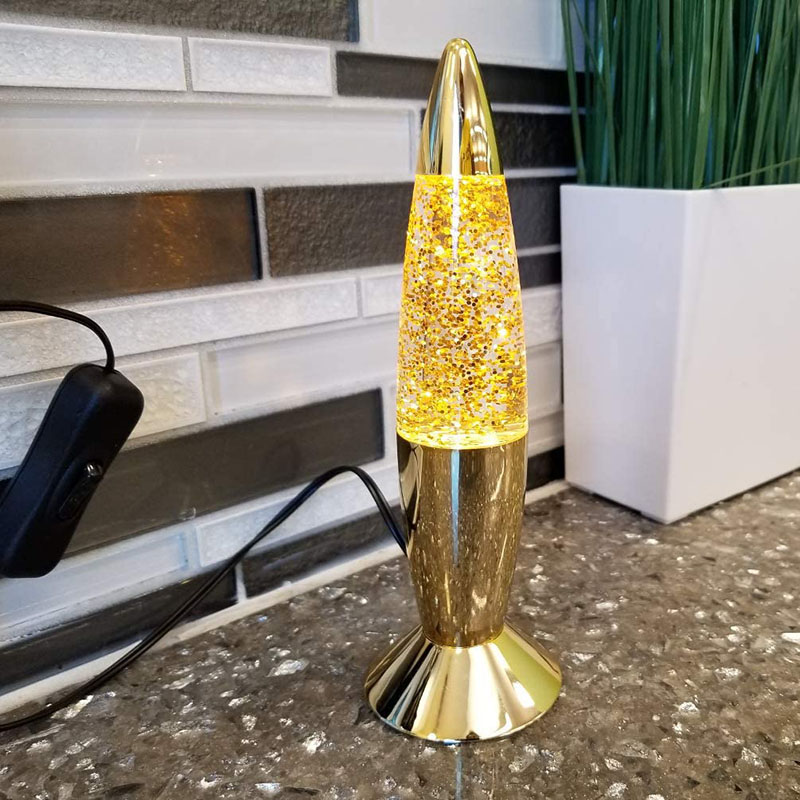 7-инчовата блестяща лампа има течност вътре в бутилка. Течността се движи неравномерно след нагряване. има бутилка с различен инч и различен цвят.