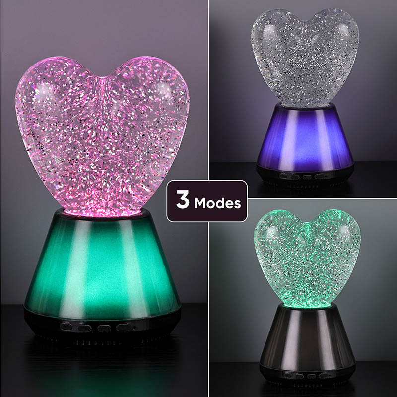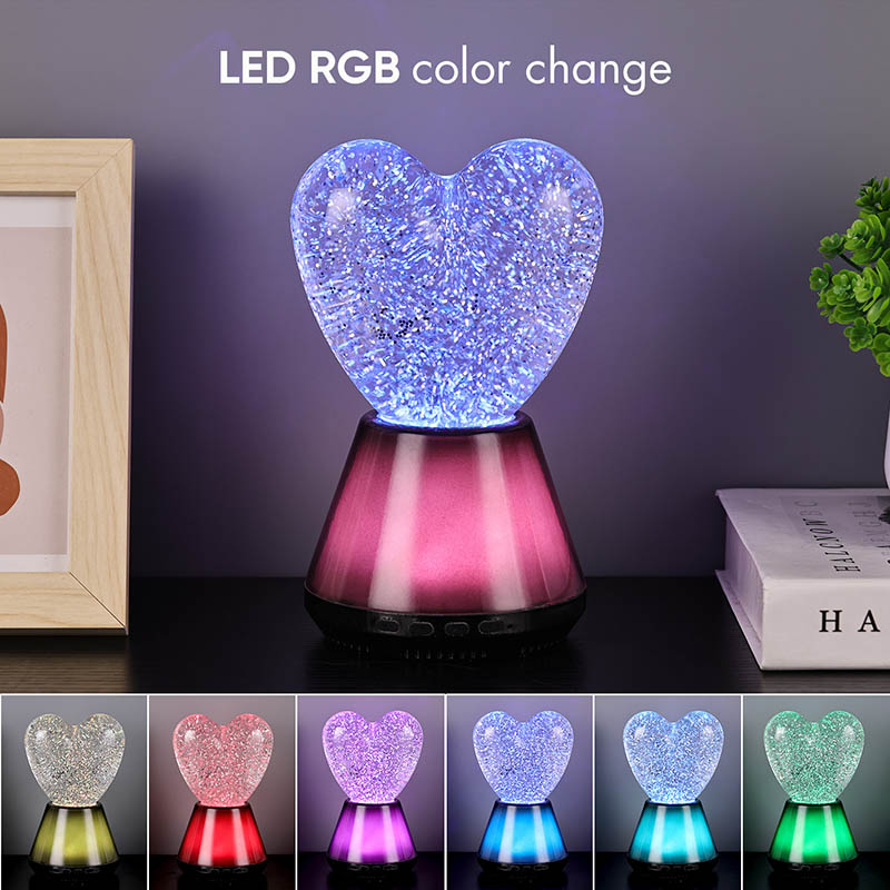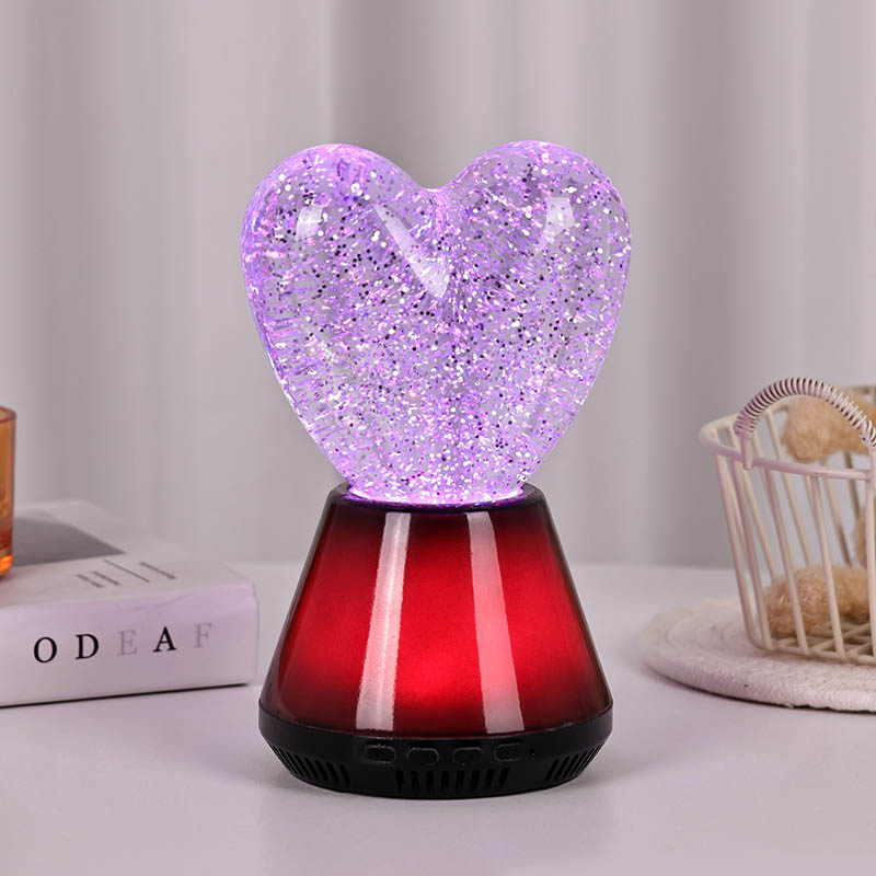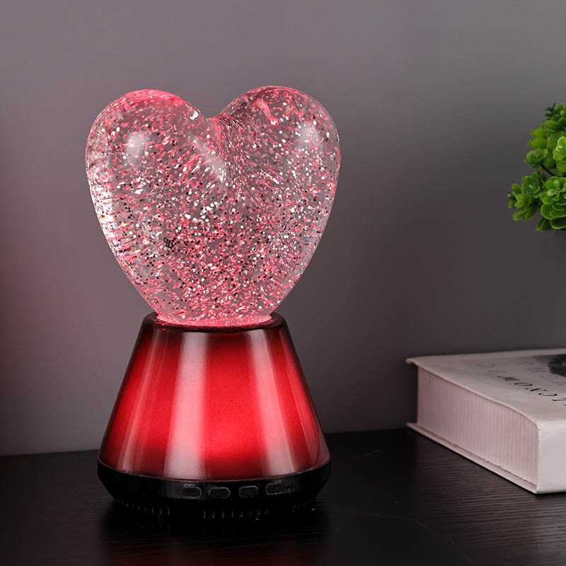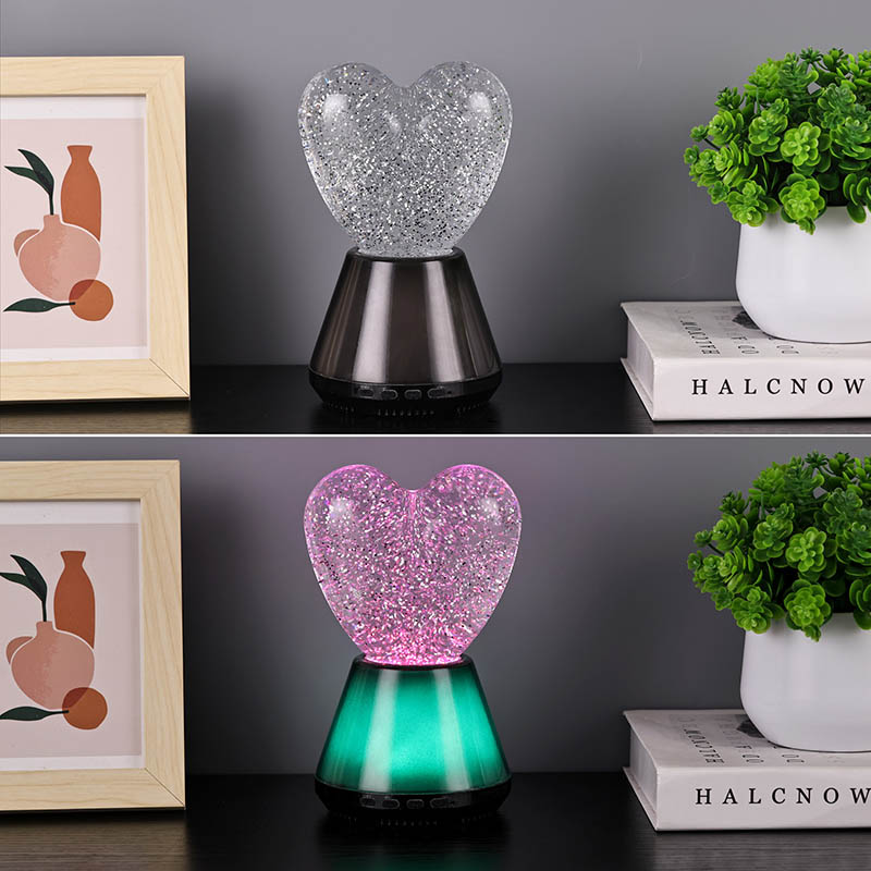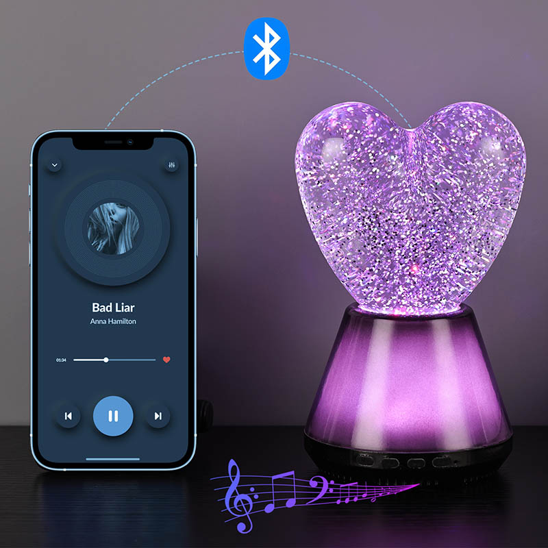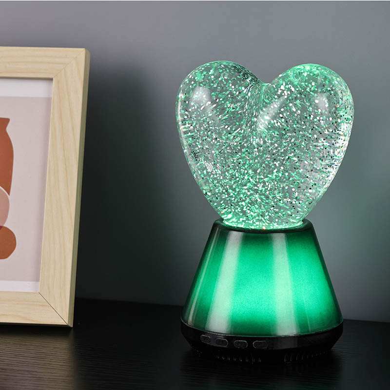 LED нощна лампа с блясък сърце с Bluetooth управление, която съчетава дизайн във формата на сърце, възпроизвеждане на музика през Bluetooth, безопасен и надежден пластмасов материал, поток от течен блясък и трансформация на цвета, е специален подарък, предназначен за деца. Това е не само практична нощна лампа, но и вълшебно произведение на изкуството, което позволява на децата да се наслаждават една красива нощ след друга на топла светлина и прекрасна музика.