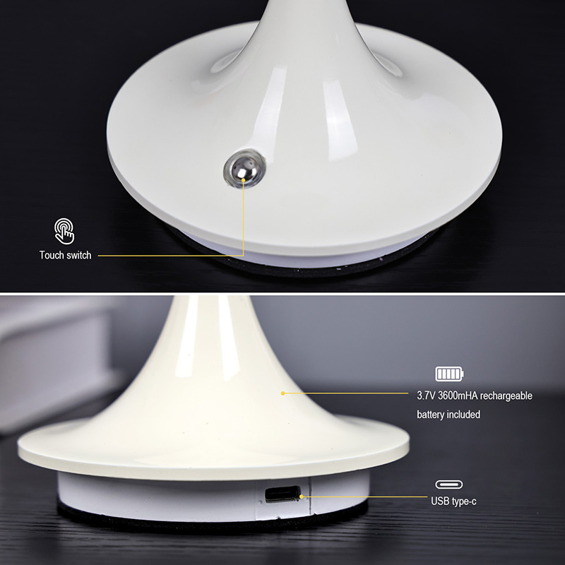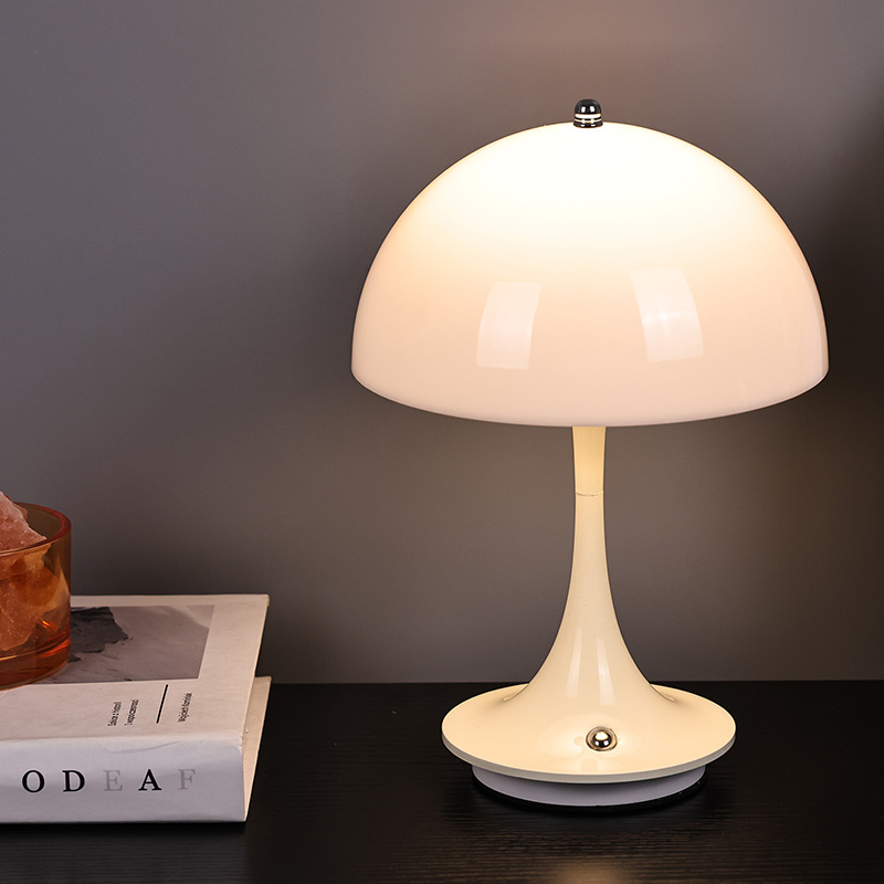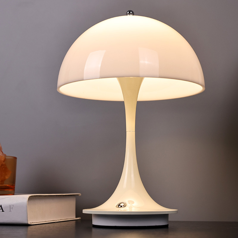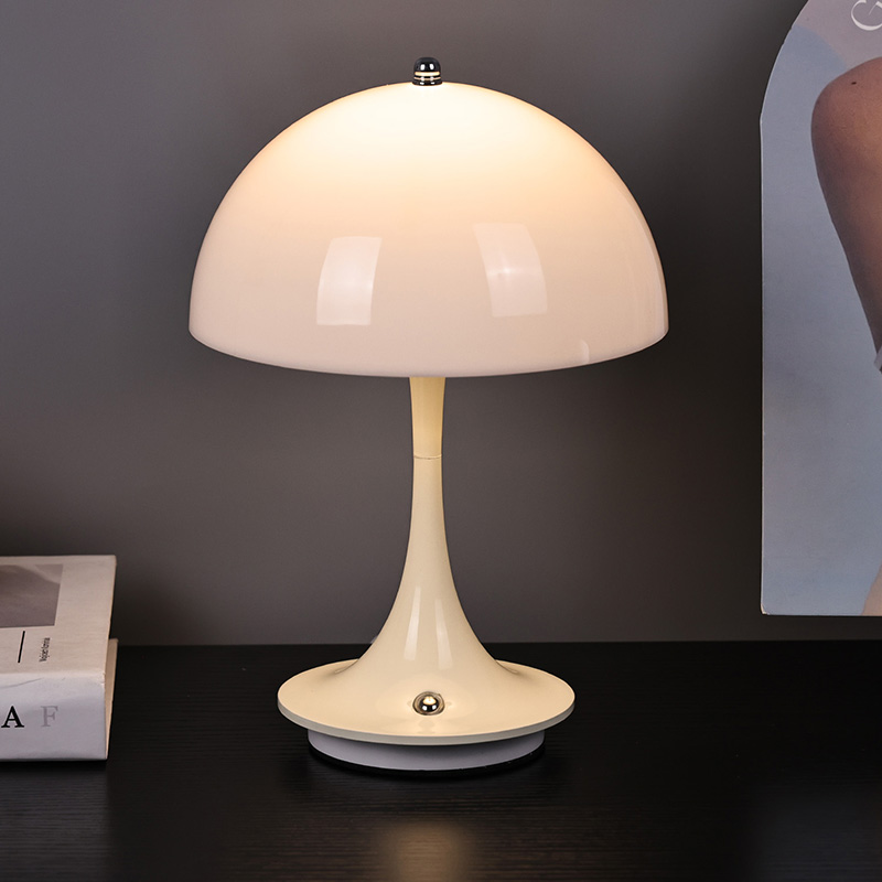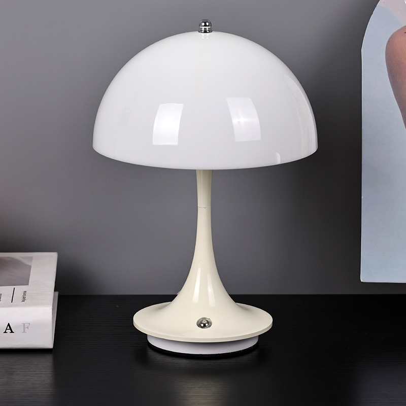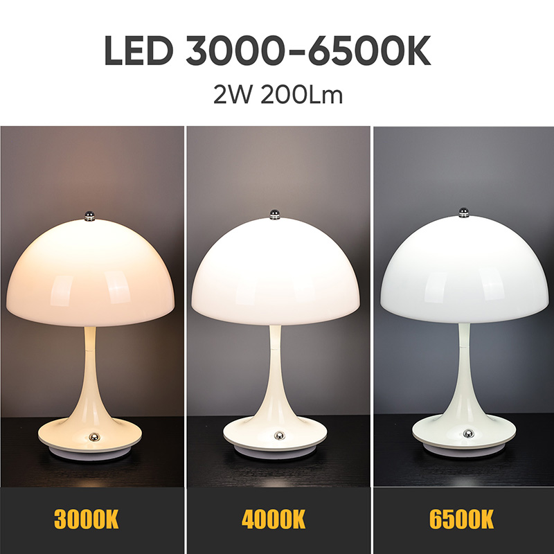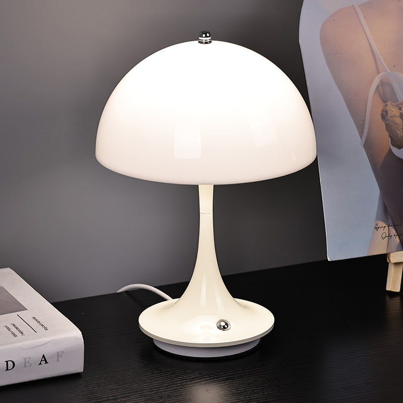 Симпатични светодиодни домашни лампи с гъбен абажур имат метална основа и метален стълб за лампа, заедно с пластмасов абажур. Повърхността на абажура е восъчна и гладка, с много добър допир, наподобяваща гъба