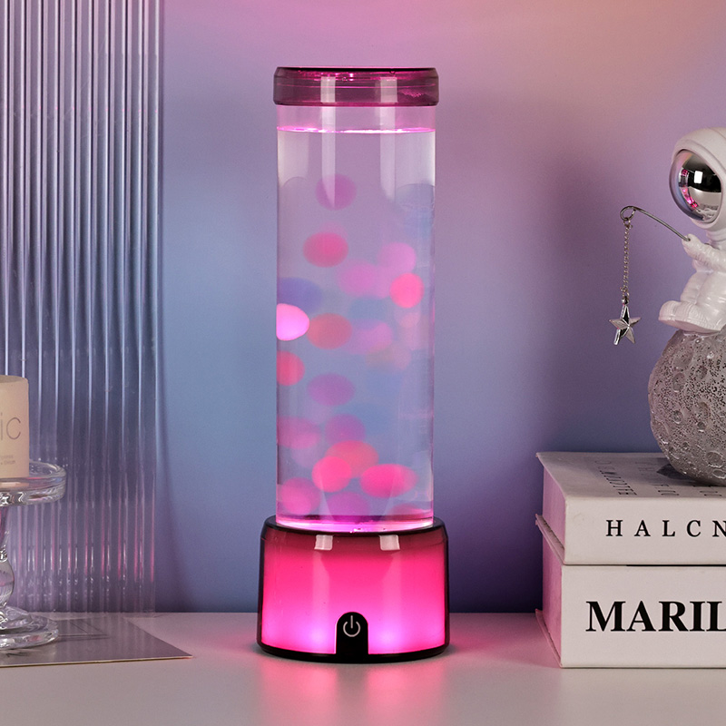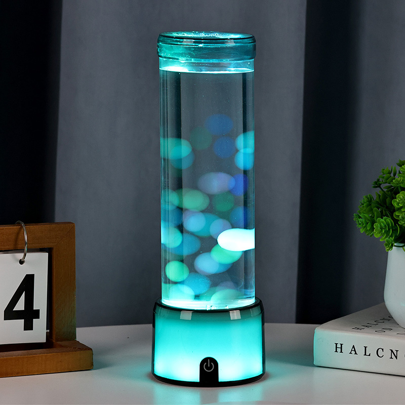 Пренесете магията на океана в дома си с тази очарователна лампа, симулираща цилиндър за аквариум. Оставете светещите медузи и променящите се цветове да създадат спокойно убежище, където и да го поставите. Насладете се на спокойствие, стил и иновация - всичко това в една зашеметяваща декоративна светлина.