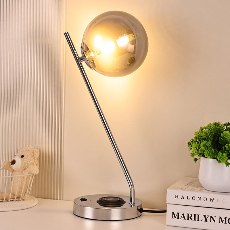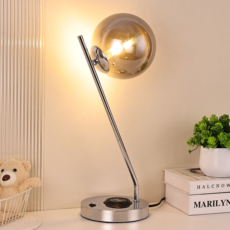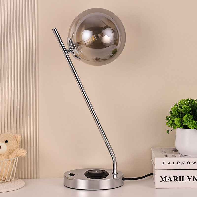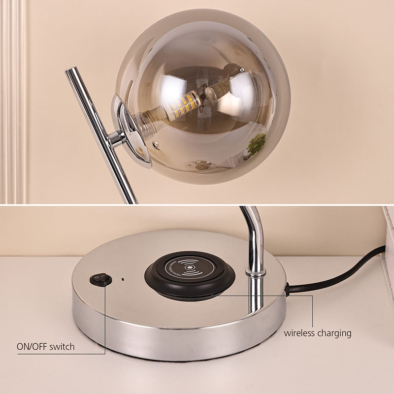 с 10W функция за безжично зареждане, ключ за ВКЛ./ИЗКЛ. на основатаЗа тази цел е предназначена настолна лампа с топка от тъмно стъкло с безжично зарядно устройство, което включва стъклен капак, LED осветление в топъл цвят и метална безжична основа за зареждане на мобилен телефон. Той перфектно съчетава модерна технология с топъл дизайн, осигурявайки ви безпрецедентно удобство и комфортно изживяване