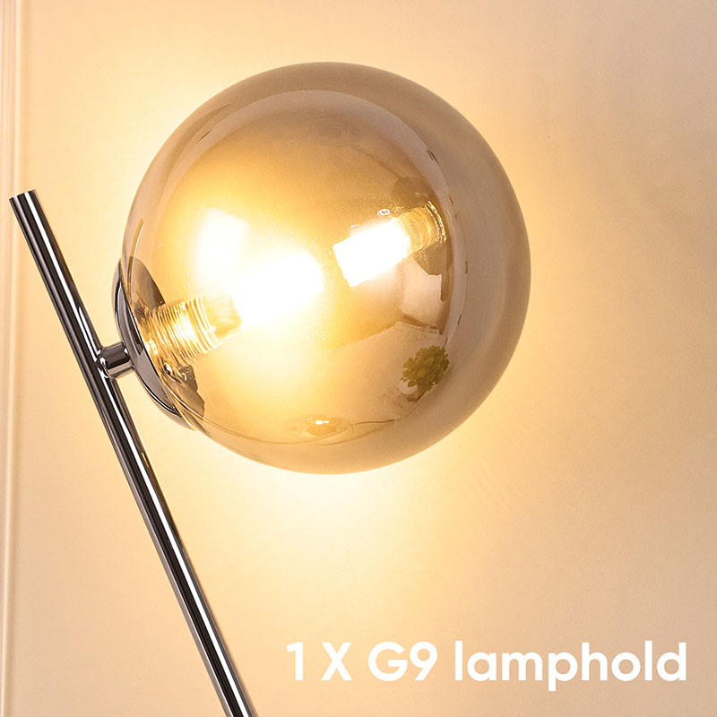 Настолната лампа е изработена от стъклена топка върху светодиодни лампи