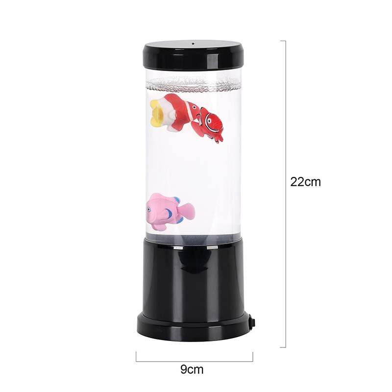 Вътре в прозрачния резервоар реалистични изкуствени риби се плъзгат грациозно нагоре и надолу в синхрон с нежни потоци мехурчета, издигащи се от дъното. Тези риби с красиви детайли, проектирани с живи цветове и реалистични текстури, изглежда плуват естествено, докато се носят от мекото течение, създадено от вградената въздушна помпа. Движението е успокояващо и хипнотично, създавайки успокояващо визуално изживяване, което помага за намаляване на стреса и насърчаване на релаксацията.