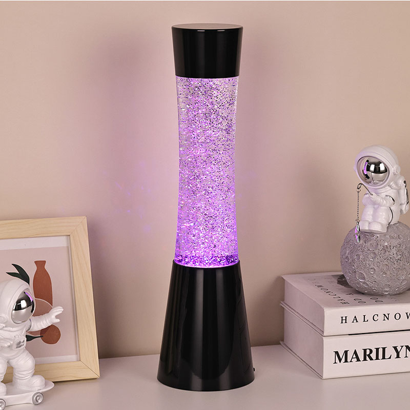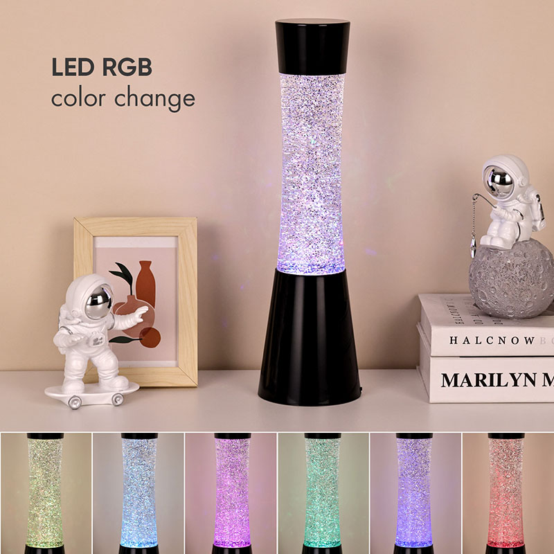 Друг акцент на тази малка нощна лампа е нейният течен и блестящ дизайн отвътре. Течността съдържа голямо количество блясък, който блести ярко под светлината на светлината, сякаш безброй звезди блестят в нощното небе. Докато течността тече, блясъкът ще се разпръсне неравномерно, създавайки мечтателен визуален ефект. Led бляскава лава лампа с батерия 3AAA също има функция за RGB цветно осветление. Чрез усъвършенствана LED технология, осветителните тела могат да излъчват мека и равномерна светлина и свободно да регулират цвета на светлината според различните сцени и нужди. Можете да изберете любимия си цвят или да накарате осветителните тела автоматично да сменят цветовете, за да създадете цветен визуален празник.