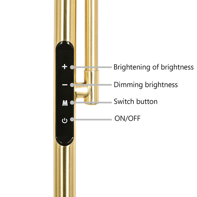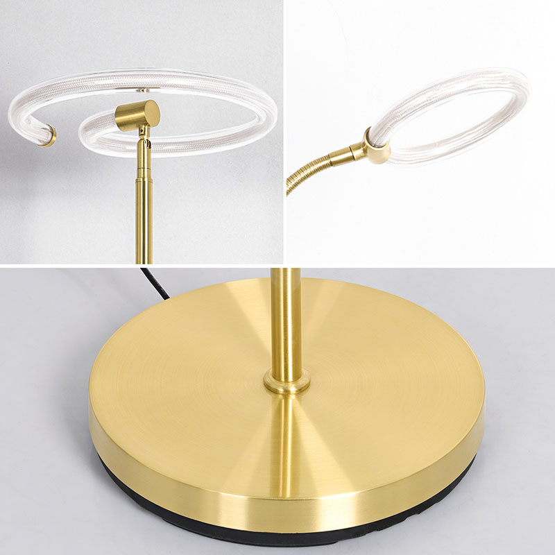 Месинг, сатениран никелЛуксозна златна подова лампа за всекидневна, проектирана със златист метален материал и силиконова тръба за 360 градусово осветление, се превърна в идеален избор за модерни домакинства с уникалния си чар и отлична функционалност,