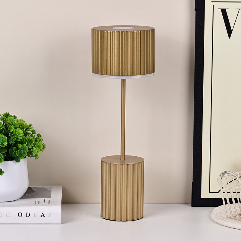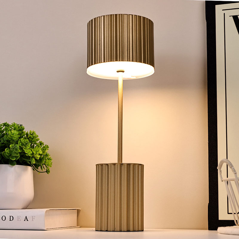 Малка настолна лампа с метален абажур с батерия е изработена от висококачествен метален материал, с повърхност, която е фино полирана и обработена, представяща гладка и деликатна текстура и елегантен блясък. Независимо дали са златни, сребърни или други класически цветове, те могат перфектно да се слеят с различни стилове на интериорна декорация, създавайки модерна и луксозна атмосфера