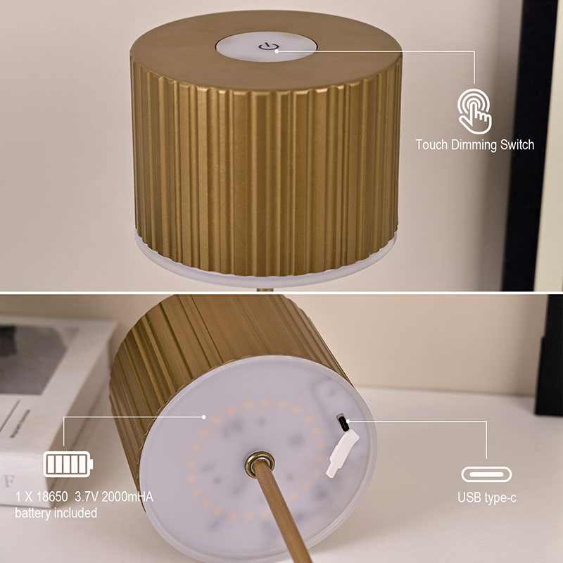 Сензорен превключвател (зареждане тип c)За да отговори на нуждите от осветление при различни сценарии, малката настолна лампа с метален абажур с батерия е оборудвана с усъвършенствана 3-скоростна функция за затъмняване. С лесни операции можете свободно да регулирате интензитета на осветлението.