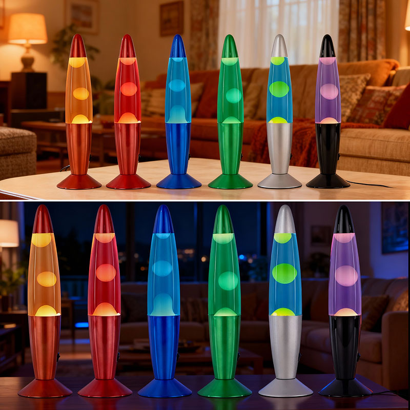 Проектирана едновременно за стил и функционалност, тази лава лампа се отличава с елегантен, заострен силует с полирана метална основа, завършена с богат метален емайл. Предлага се в набор от смели цветове, включително наситено червено, кралско синьо, живо зелено, блестящо сребристо, елегантно черно и топло медно, всяка лампа предлага уникална естетика, която допълва всеки декор – от минималистични всекидневни до еклектични спални и уютни домашни офиси.