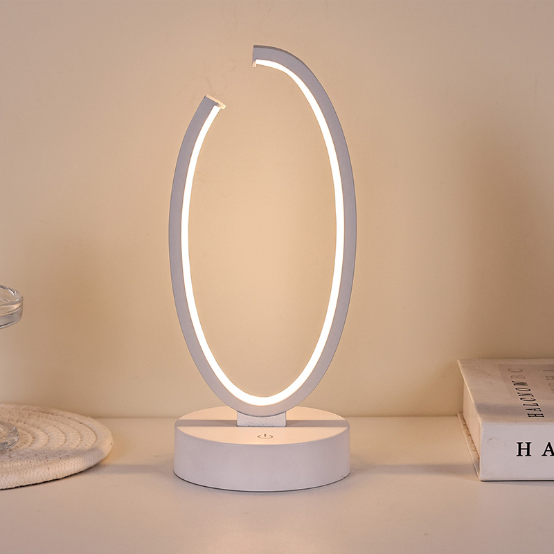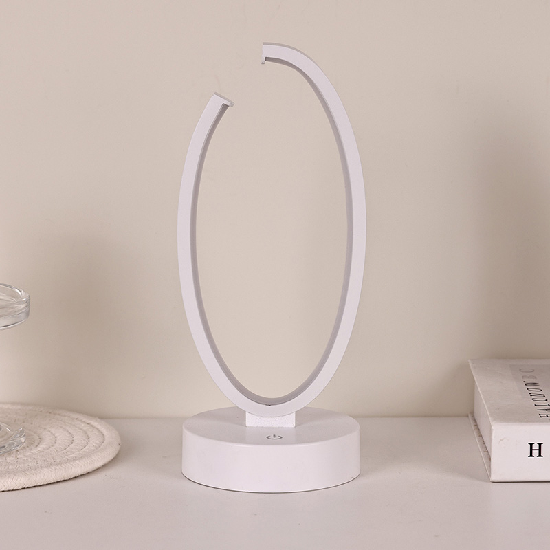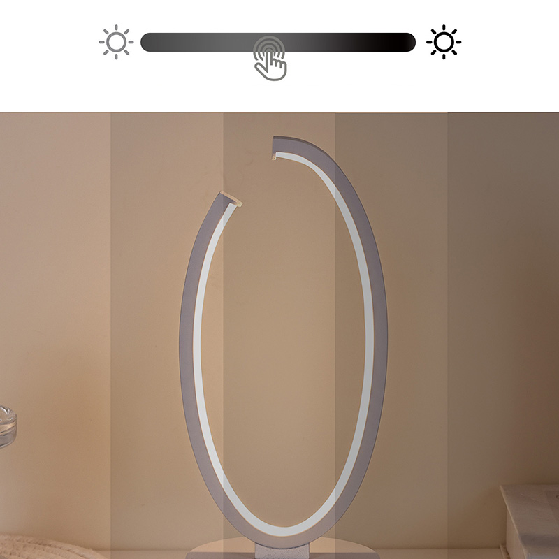Философия на дизайна: простотата среща изтънчеността Силуетът на лампата е вдъхновен от съвременния минимализъм — чисти линии, геометрични форми и чисти повърхности. Пръстенът му с овална форма излъчва меко сияние, което сякаш се носи над кръглия му