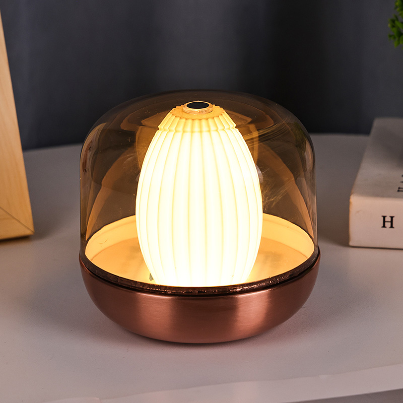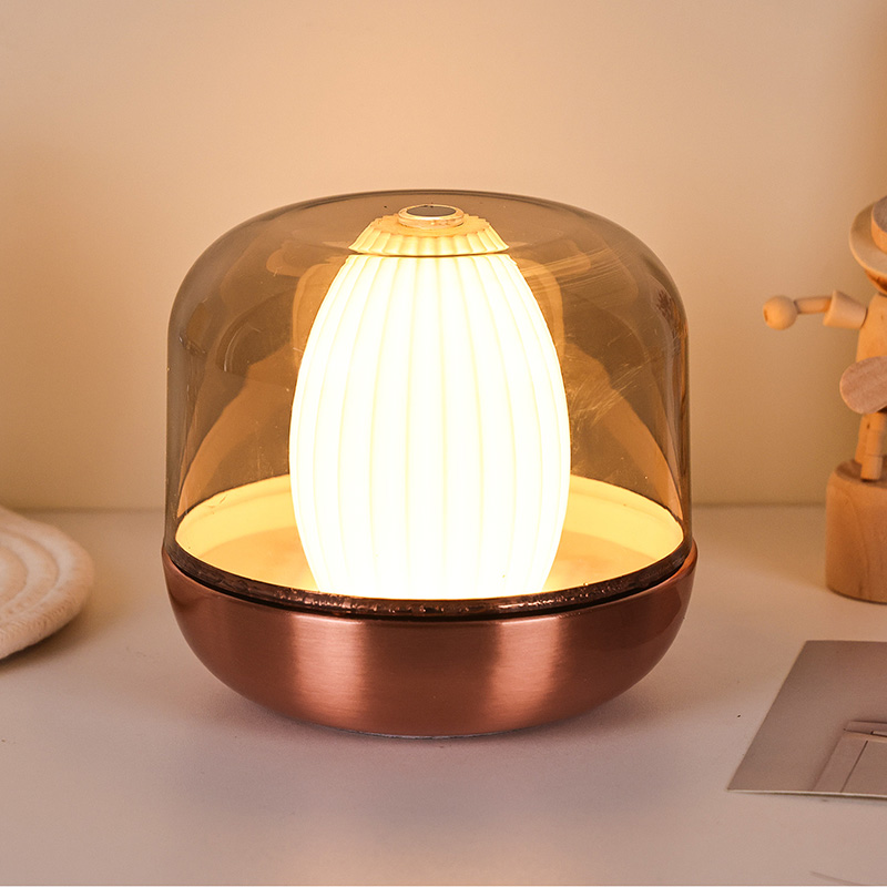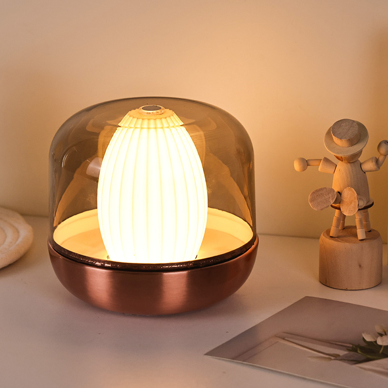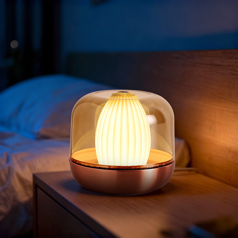 Дизайнерското вдъхновение на тази топла светеща нощна лампа произтича от сливането на природата и архитектурната естетика. Със своята закръглена и плътна цялостна форма, той прилича на прецизно издялан скъпоценен камък от кехлибар. Поставен на бюро или маса, той лесно се превръща във визуална фокусна точка. Външният слой разполага с покритие с висока прозрачност, което не само защитава вътрешния източник на светлина, но също така създава уникални светлинни и сенчести слоеве чрез пречупване, създавайки мечтателен визуален ефект.