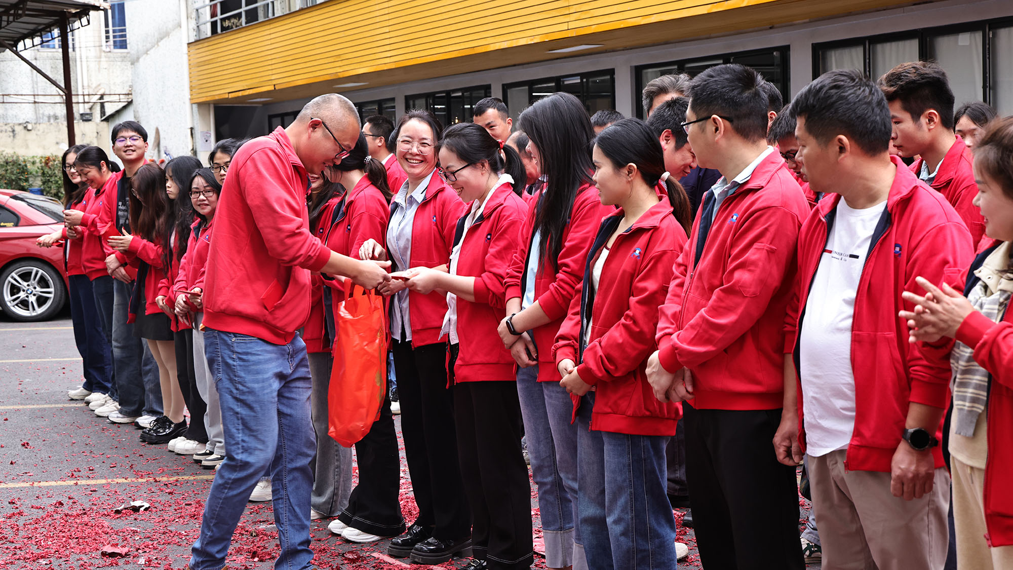 Впоследствие вълнуващата част от раздаването на „Червени пакети Kick-off“ доведе атмосферата на място до своя връх. Ръководството на компанията лично раздаде благодатни червени пликове (Li Shi) на всеки служител. Тези тежки червени пакети носеха не само грижата и благословията на компанията за персонала, но и красиви надежди за безпроблемна работа и щастлив живот на всички през новата година. Служителите, получаващи червените пакети, грееха с щастливи усмивки, разменяйки поздрави „Проспериращ старт“. Смях и радост изпълниха въздуха, преплитайки силния вкус на Новата година с човешката топлота, стопляйки сърцата на всички.