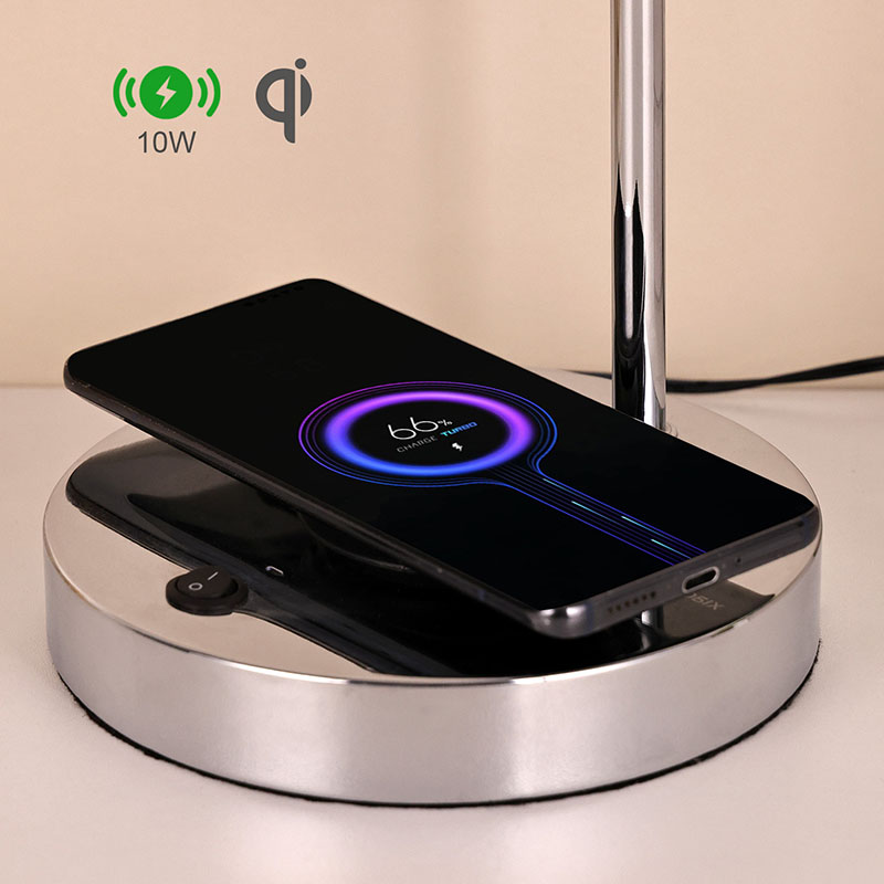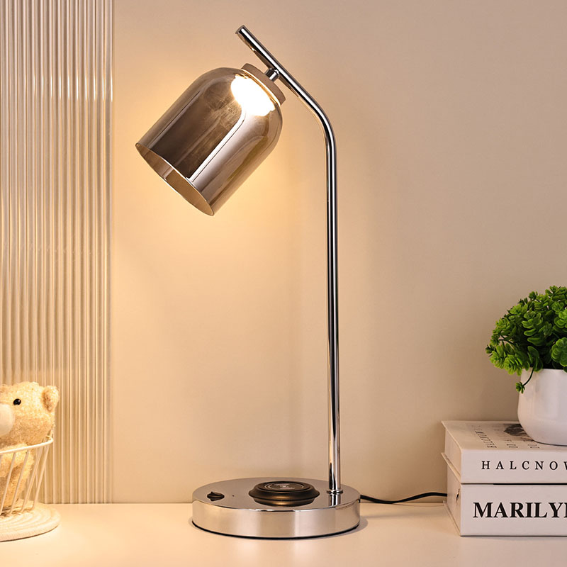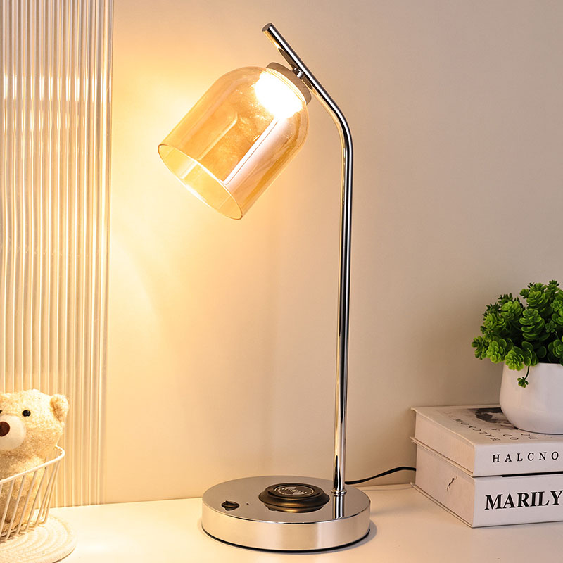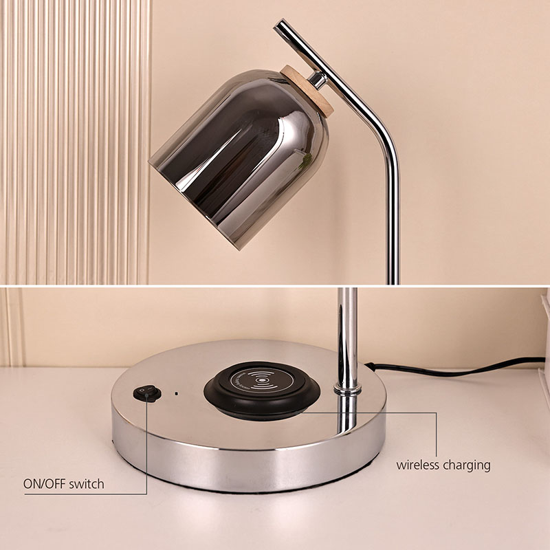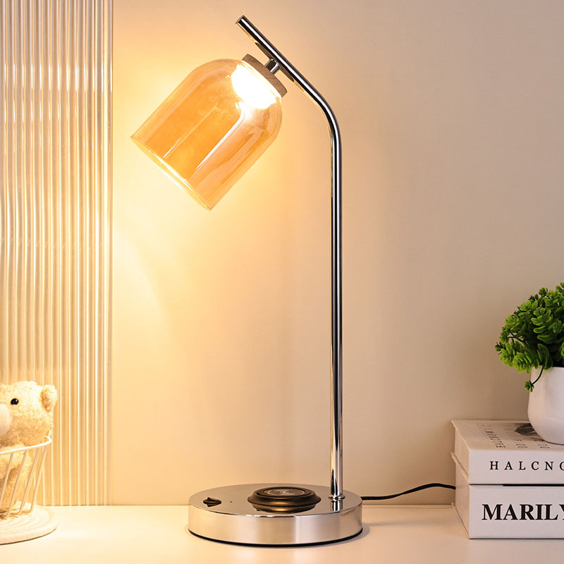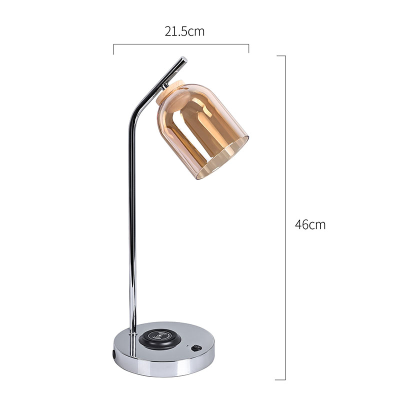 QI led настолна лампа със стъклен абажур с метална основа и корпус