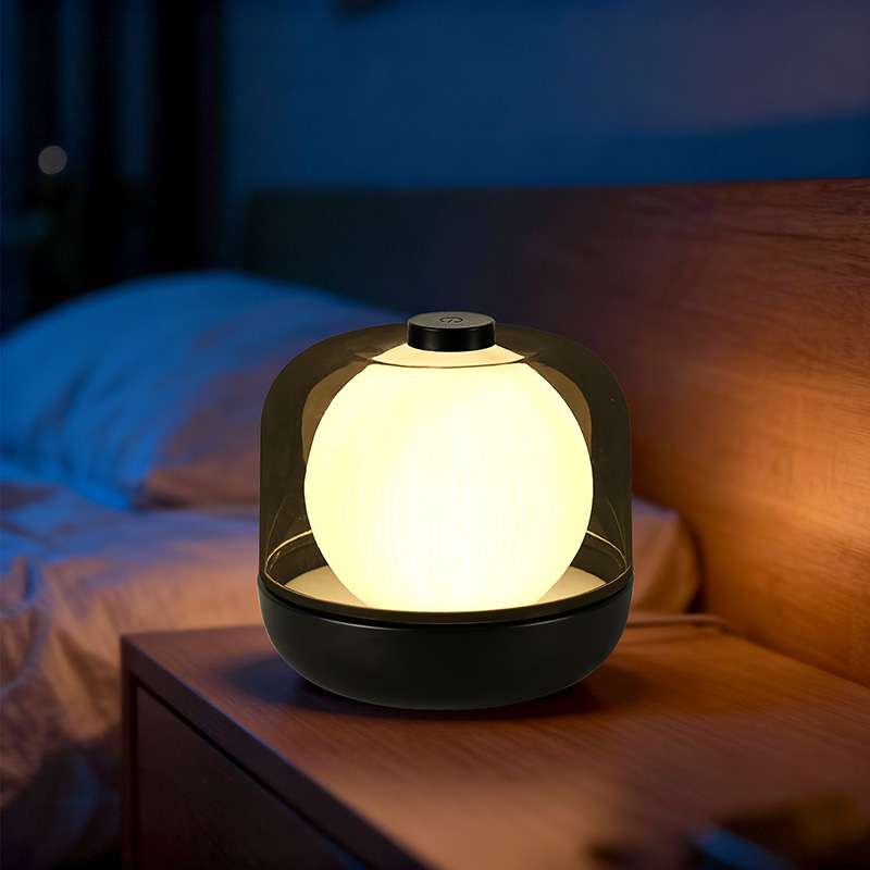 Изработен от високопрозрачен, екологичен материал, външният абажур не само предпазва вътрешните компоненти, но и разпръсква светлината равномерно за нежно сияние без отблясъци. Здравата основа осигурява стабилност, докато интуитивното сензорно управление отгоре позволява лесно регулиране на яркостта, цветовите режими,