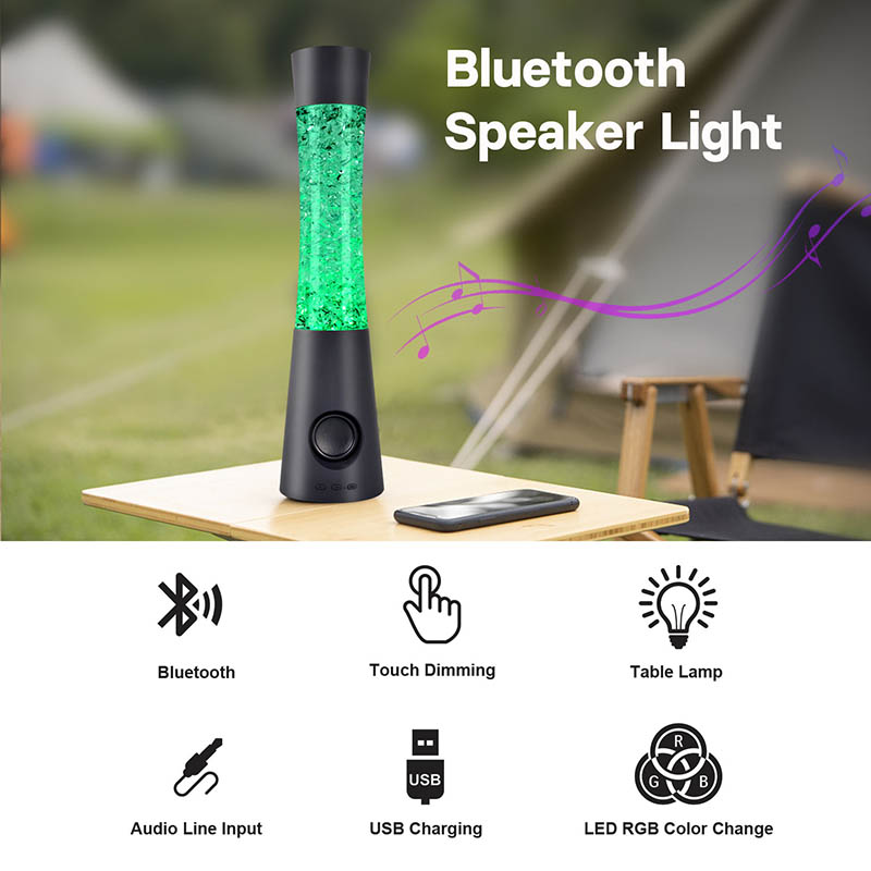 RGB Bluetooth Speaker Lamp with Glitter съчетава красотата на движещия се блясък с удобството на Bluetooth технологията, създавайки уникален