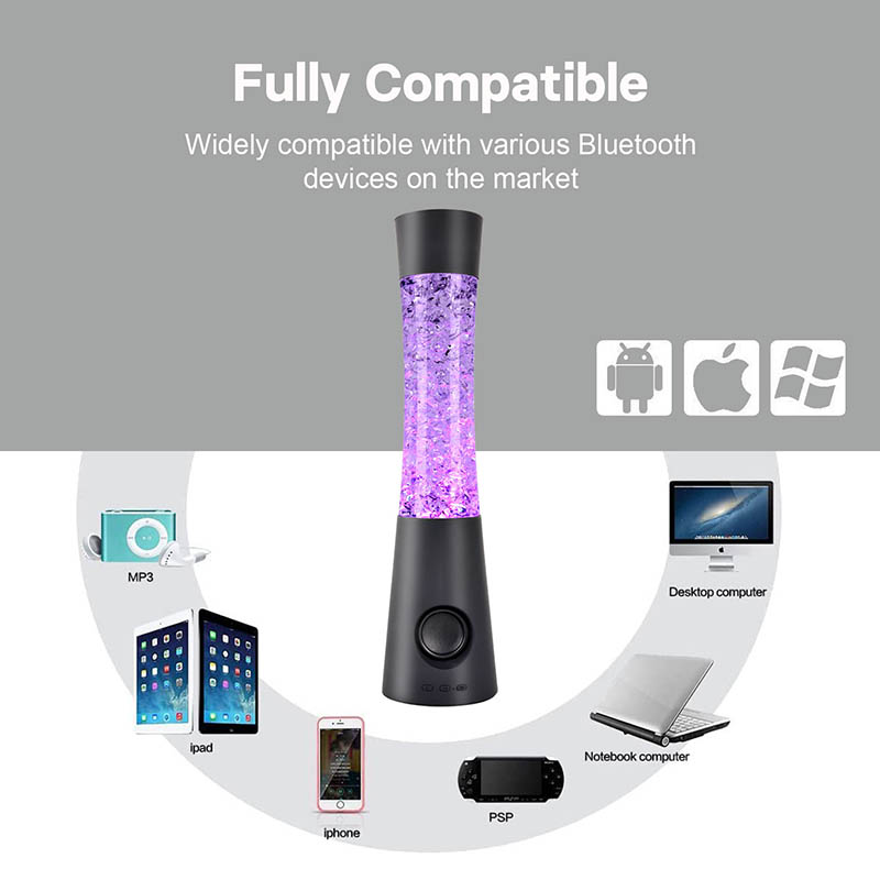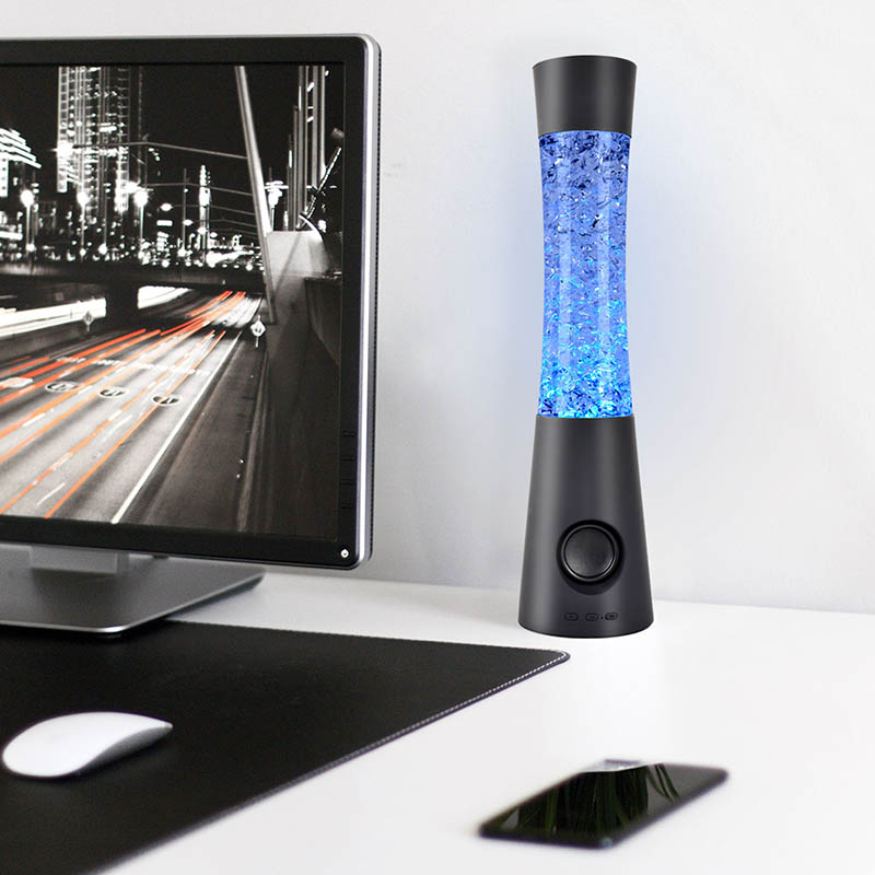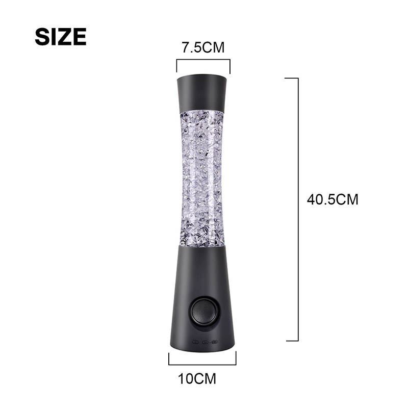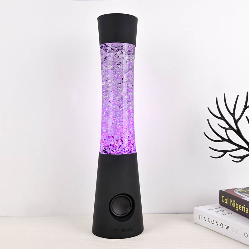 ВъведениеПредставяме ви RGB Bluetooth високоговорител с блясък, уникално и стилно допълнение към вашия домашен декор. Тази иновативна лампа съчетава успокояващата визуална привлекателност на движещия се блясък в течна колона с удобството на Bluetooth свързаността за мултисензорно изживяване. Елегантният дизайн на лампата, съчетан с нейните функционални характеристики, я прави перфектна комбинация от естетика и технология.