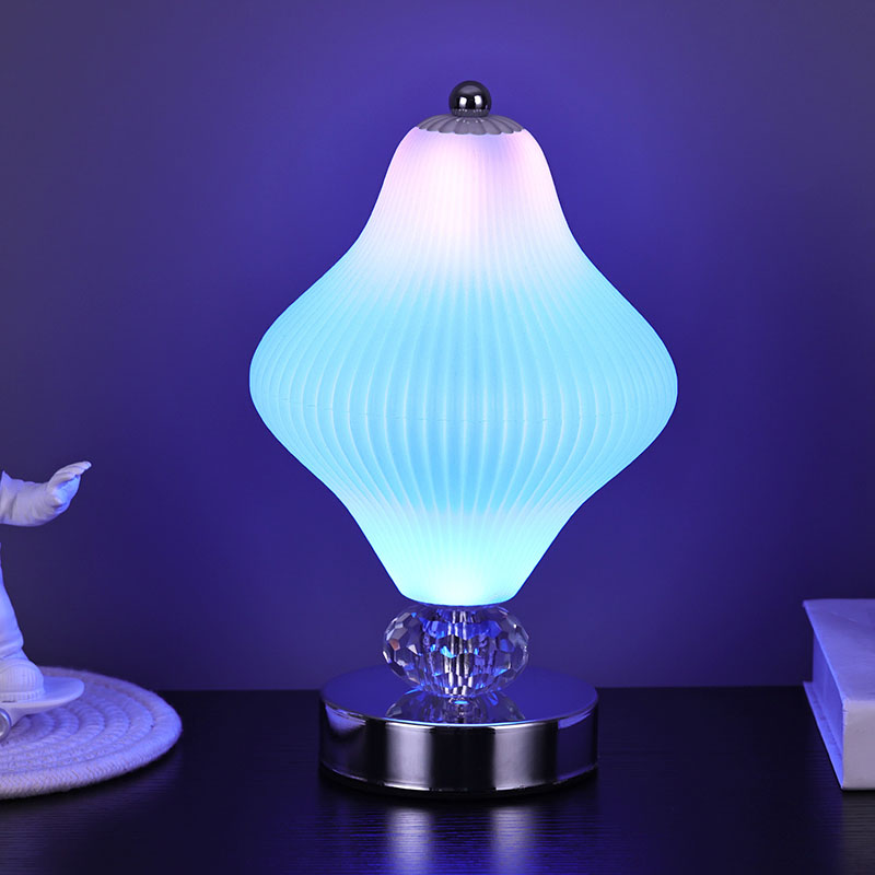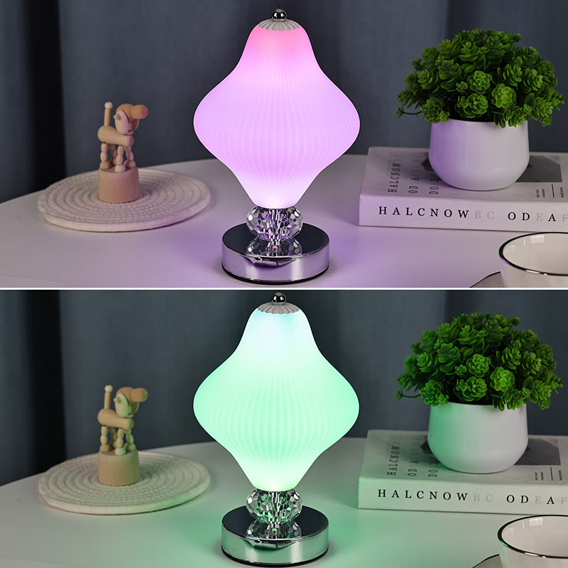 В допълнение към уникалния дизайн на абажура, тази малка настолна лампа разполага и с функционалност на преливащ RGB цвят. Чрез усъвършенствана LED технология, осветителните тела могат да излъчват мека и равномерна светлина и свободно да регулират цвета на светлината според различните сцени и нужди. Можете да изберете любимия си цвят или да накарате осветителните тела автоматично да сменят цветовете, за да създадете цветен визуален празник.