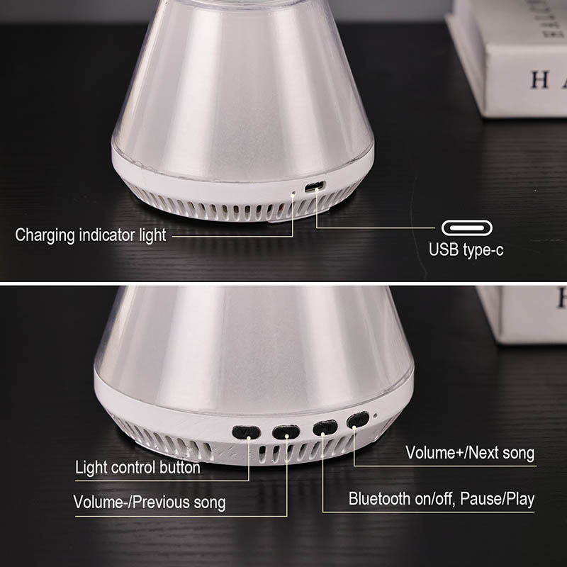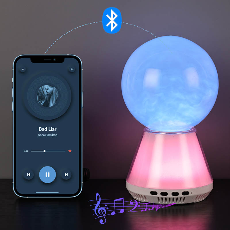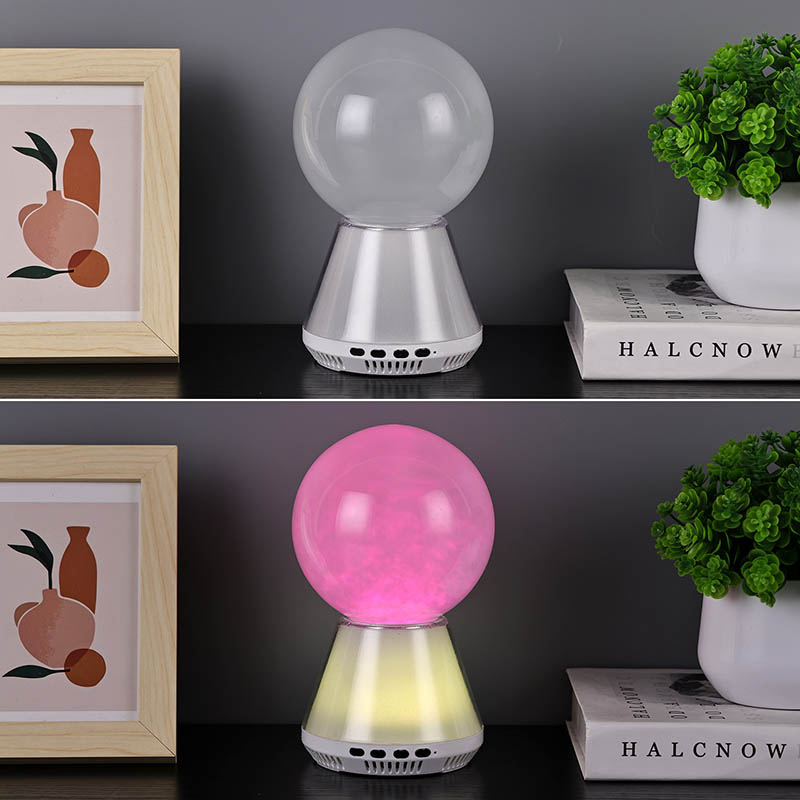 RGB LED блестяща лампа с bluetooth управление, която комбинира потока на течност в стъклена топка в състояние, подобно на облак, синхронизирани промени в цвета между основата и течността и Bluetooth връзка за възпроизвеждане на музика, е проектирана да създаде мечтан свят за вас. RGB LED блестяща лампа с bluetooth управление е не само практична нощна лампа, но и вълшебно произведение на изкуството.