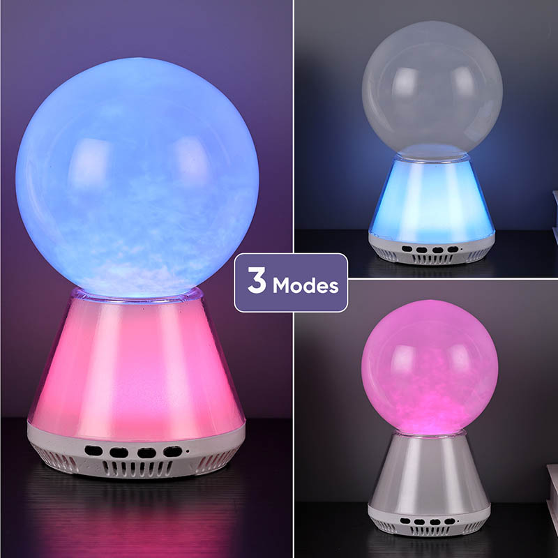 Основният акцент на RGB LED блестяща лампа с bluetooth контрол е нейният уникален дизайн на стъклена топка. Вътрешността на стъклената сфера е пълна с мистериозна течност. Когато лампата е включена, течността бавно ще тече вътре в сферата, образувайки ефект на мечтан облак. Тези облаци и мъгла сякаш падат от небето,