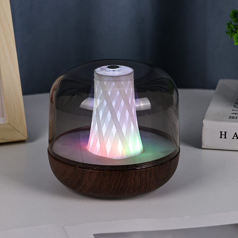 Докато светлината танцува в кулата, прозрачното пластмасово покритие меко разпръсква сиянието, създавайки мъглива, ефирна атмосфера. В затъмнена стая цялата структура изглежда като плаваща „Кула от светлина“ – излъчваща спокойствие и мистерия, приканваща към тихо съзерцание.