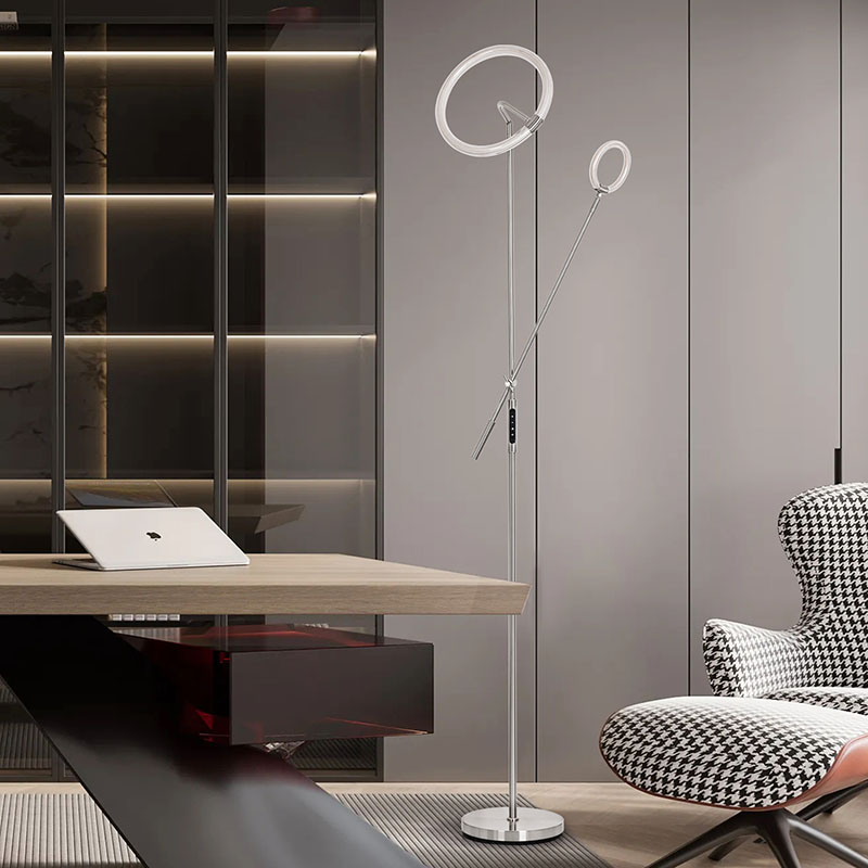Лампата и основата на тази подова лампа са изработени от висококачествени метални материали, които имат добра стабилност и издръжливост. Металните материали не само гарантират стабилността и безопасността на осветителните тела, но също така ефективно устояват на влиянието на външната среда, удължавайки експлоатационния живот